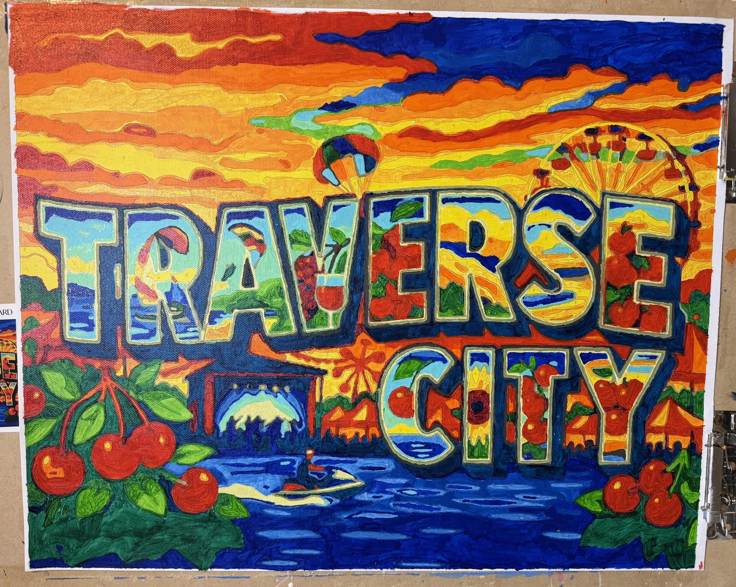 This serene paint-by-number kit captures the calming beauty of Traverse City’s lavender farms, where rows of vibrant purple blooms stretch beneath soft summer skies. Designed in Mitten Masterpiece’s signature elevated style, it reflects the region’s charm, natural elegance, and the peaceful landscapes that make Northern Michigan unforgettable. A perfect choice for those who love botanical art and Michigan’s hidden gems.