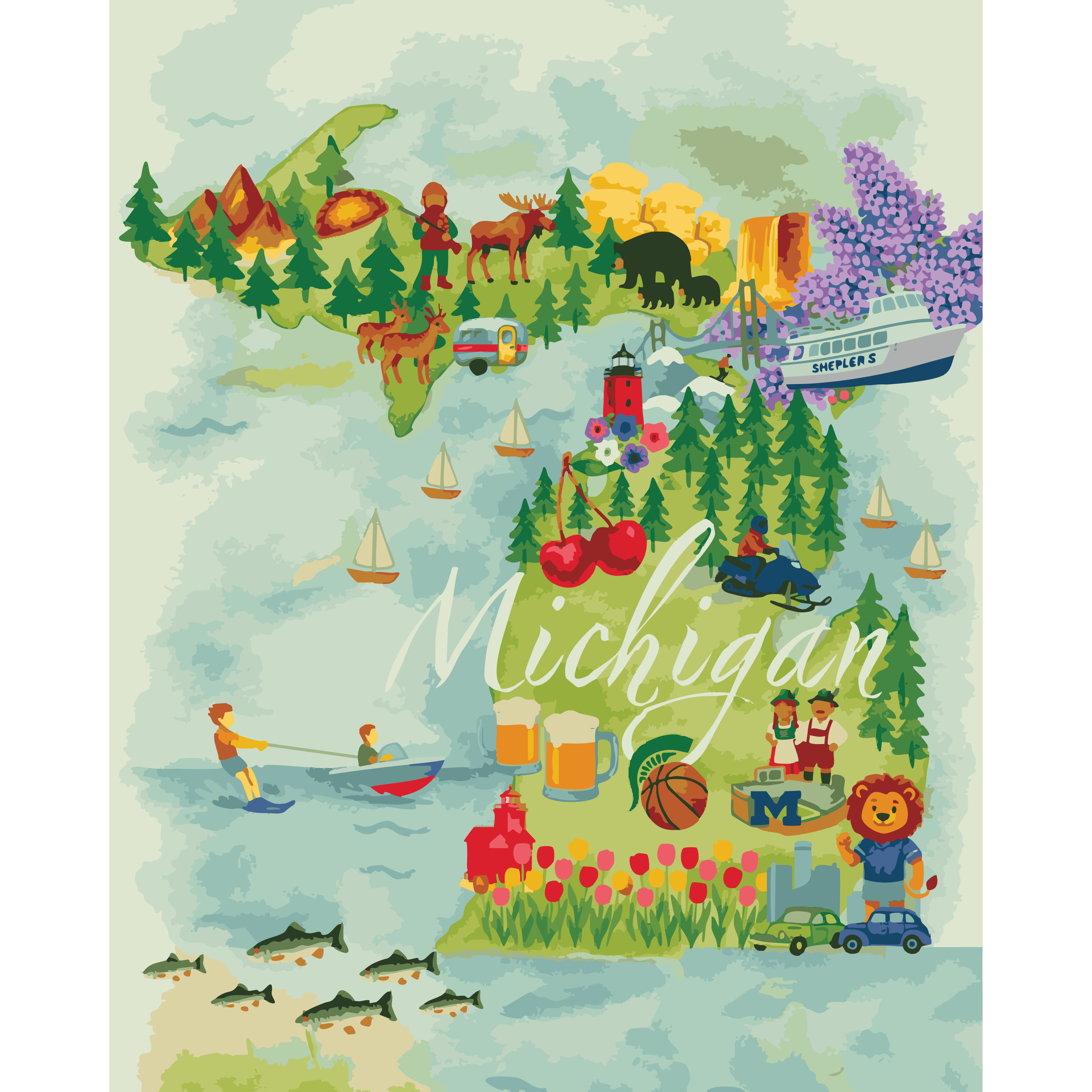Step into the charm of Petoskey with this easy and cheerful paint-by-number design. Featuring the Gaslight District’s colorful storefronts, a sailboat on Little Traverse Bay, the iconic Bay View Inn, and beloved Petoskey stones in the foreground, this kit captures everything locals and visitors adore. With simple shapes and clean color blocks, it’s perfect for beginners, kids, and anyone who wants a relaxing creative escape.